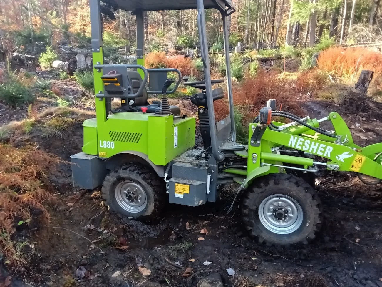 Total length with bucket lowered: 10’9” (3.28 m)
